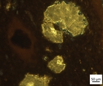 The matrix is clayey, with various amount of calcium carbonate, and devoid of foraminifers. There are occasional silt to fine sand-sized dolomite rhombohedral crystals embedded in the matrix. Opaque particles often appear as well as clay nodules.
