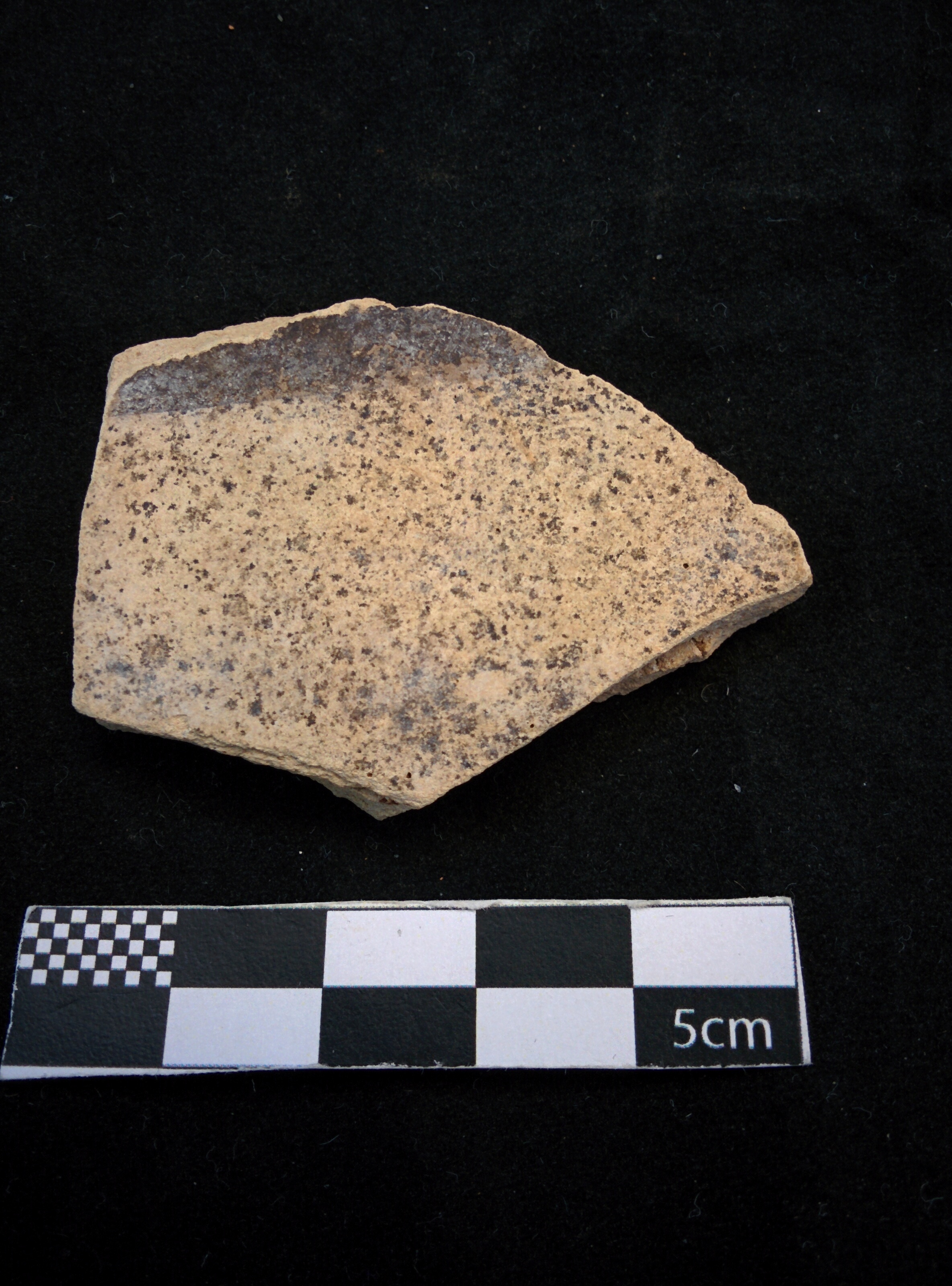 Vessel part of the Early Iron Age Cypro-Phoenician Interactions: A Study of the Tel Dor Cypro-Geometric Ceramic Imports project directed Ayelet Gilboa from the University of Haifa and Shlomo Shoval of the Open University and supported by the Israeli Science Foundation. The Typology of the Dor assemblage, collection and preparation of the reference collection for analysis was done by Anna Georgiadou as part of a post-doctoral fellowship directed by Gilboa at the University of Haifa. The laboratory work was conducted at the Laboratory for Sedimentary Archaeology, Group Head: Prof. Ruth Shahack-Gross, the department of Maritime Civilizations. The thin section was prepared by Golan Shalvi.