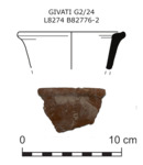 This is the common ware used for cooking vessels in the Shephelah and in the Central Hills of Israel in the Persian and Hellenistic periods. The texture of this ware is gritty; vessels feel sandy, and they are hard and well-fired. They vary in clay colour between grey and dark red. The surface is fired to a grey, dark red, sometimes very dark red-purple. Vessels were finished on the wheel.