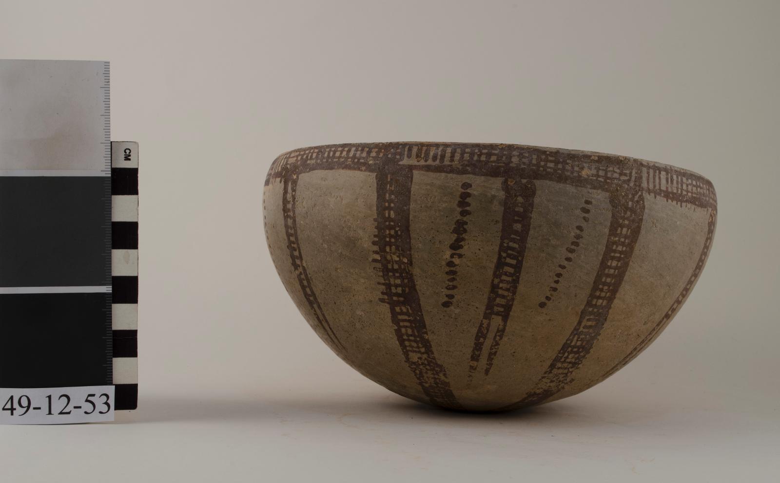 Normal stage: Same clay as earlier but coarser. Light grey to buff slip. Paint dark brown.